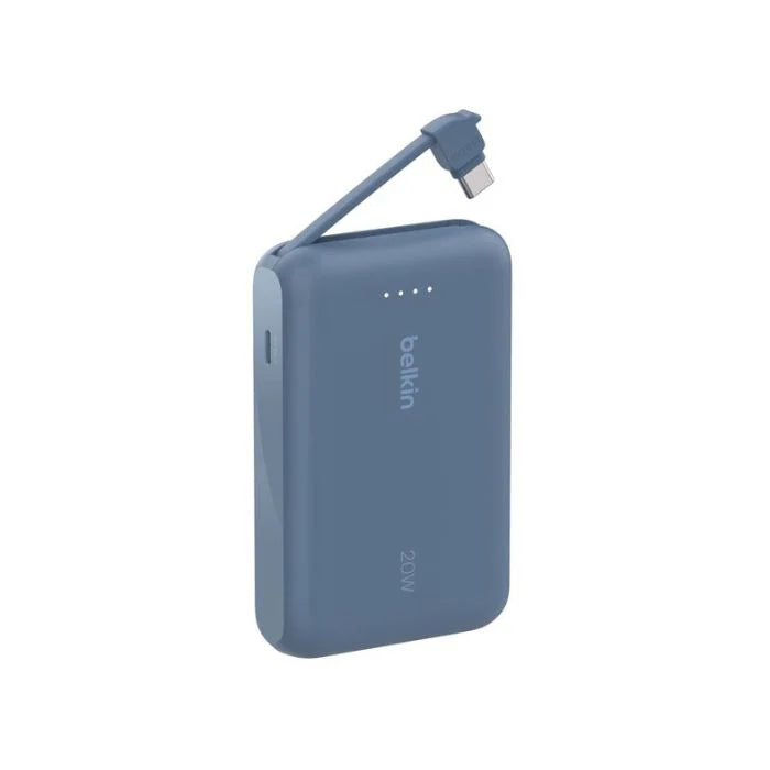 Belkin BoostCharge Power Bank 10K, PD 20W with USB-C Integrated Cable and USB-C port.